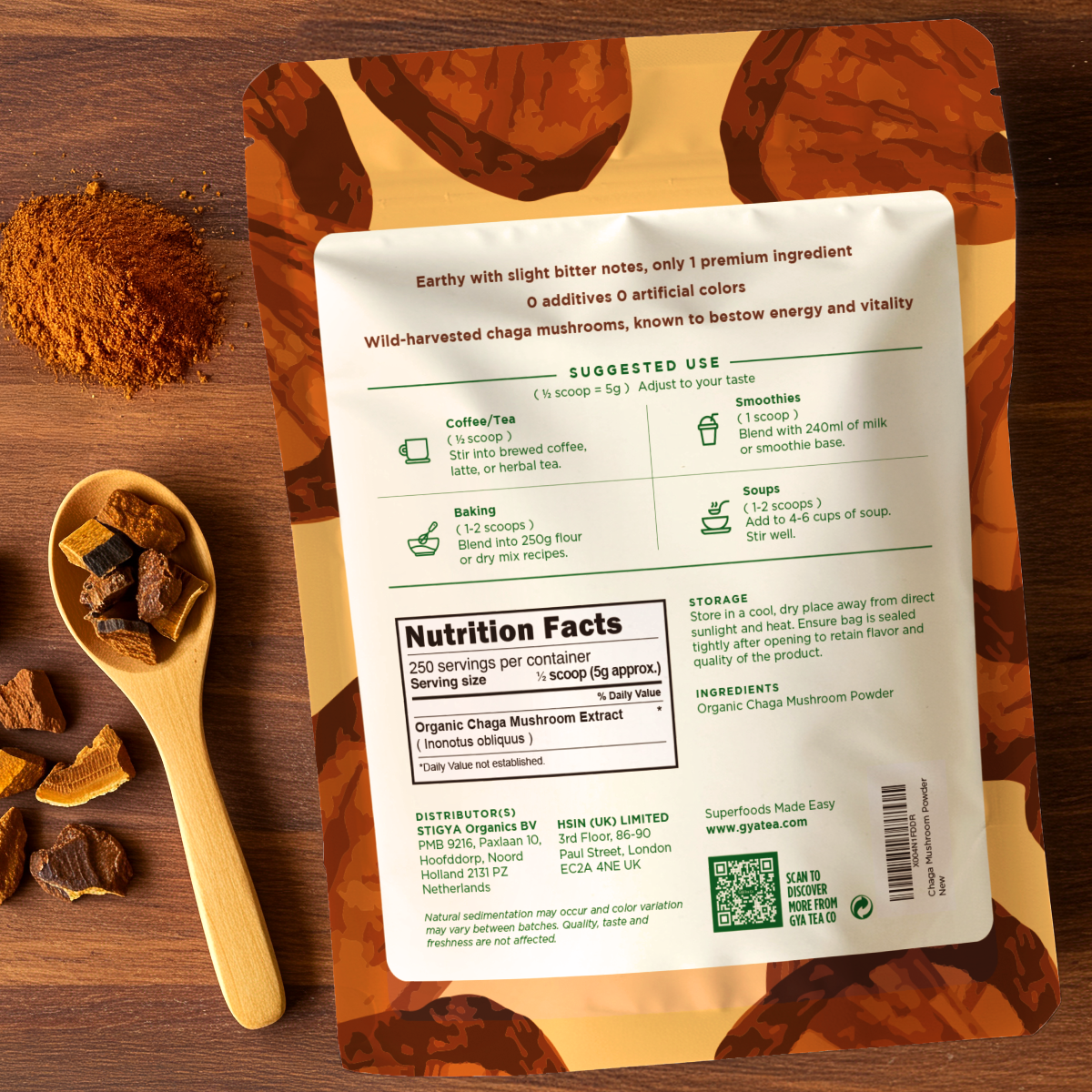 Organic Wild-Harvested Chaga Mushroom Superfood Powder 17.64 Oz | 1.1lb | 500g